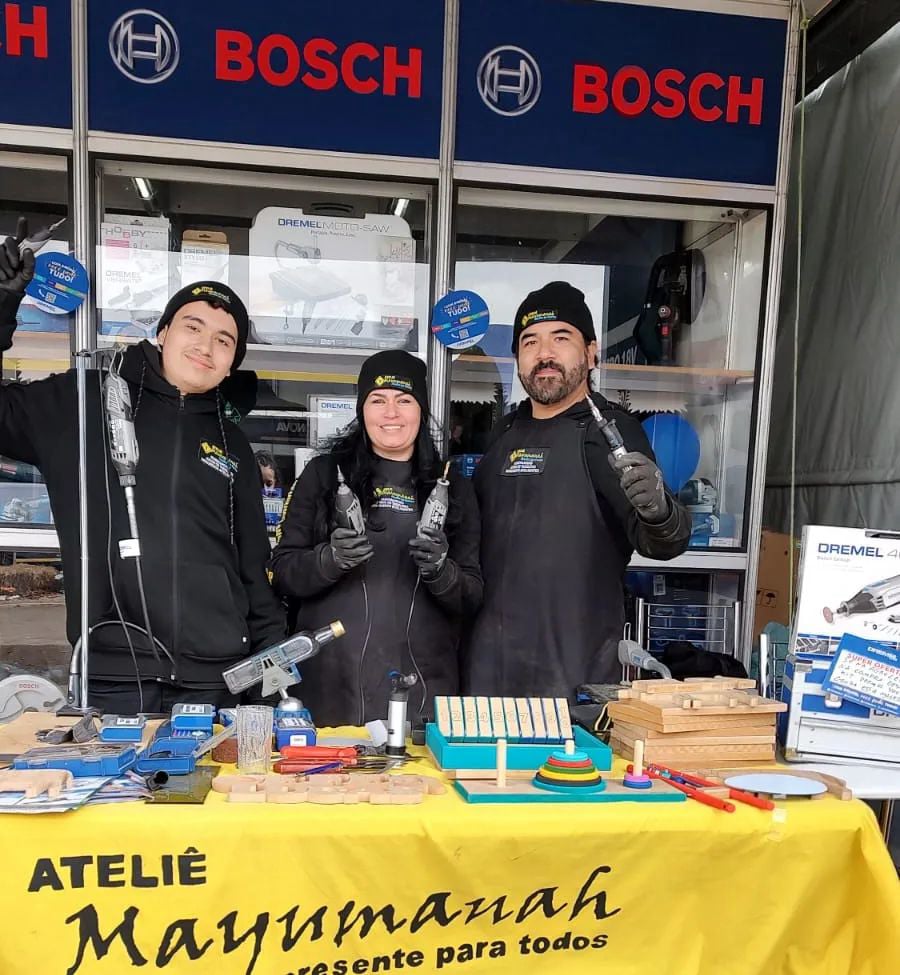 O Ateliê Mayumanah já esteve presente em quatro edições da Mega Artesanal, a maior feira para produtos de artesanato da América Latina. Sempre atuando nos stands da Dremel, Kênia e Diogo integram o time dos stands, formados pela equipe de treinadores Dremel Brasil, outros embaixadores Dremel e por artesãos convidados.